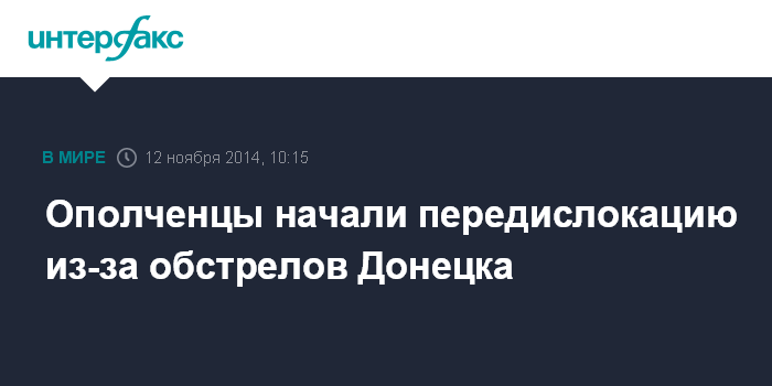 Москва. 12 ноября. INTERFAX.RU - В руководстве ДНР объяснили появление колонны военной техники в пригороде Донецка передислокацией отдельных подразделений ополчения.