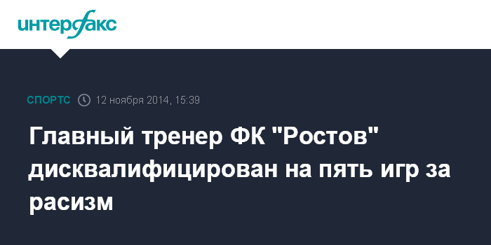 Главный тренер ФК "Ростов" дисквалифицирован на пять игр за расизм
