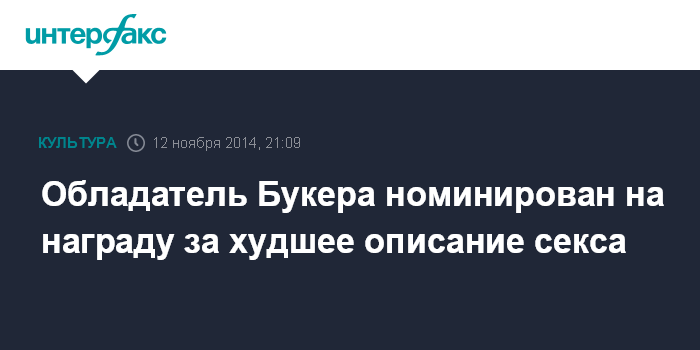 Обладатель Букера номинирован на награду за худшее описание секса