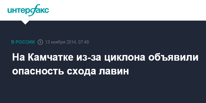Москва. 13 ноября. INTERFAX.RU - Мощный циклон накроет Камчатку в ночь на пятницу, в нескольких районах края объявлена лавинная опасность, сообщает в четверг ГУ МЧС России по Камчатскому краю.