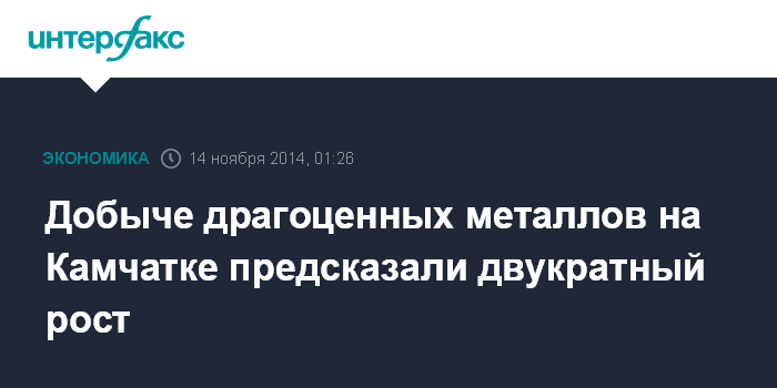 Москва. 14 ноября. INTERFAX.RU - Объем добычи драгоценных металлов на Камчатке в ближайшие годы увеличится вдвое. Такой прогноз обнародовала в пятницу пресс-служба министерства природных ресурсов и экологии региона.