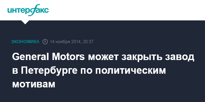 General Motors может закрыть завод в Петербурге по политическим мотивам
