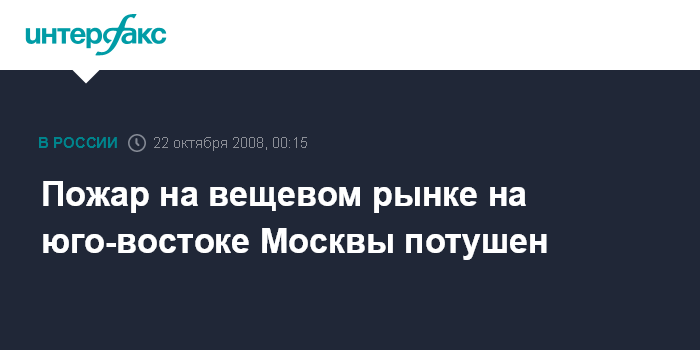 Пожар на вещевом рынке на юго-востоке Москвы потушен