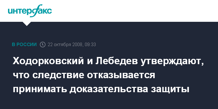 Москва. 22 октября. INTERFAX.RU - Экс-глава МФО "МЕНАТЕП" Платон Лебедев и бывший руководитель НК "ЮКОС" Михаил Ходорковский заявляют в суде о том, что следствие не принимает доказательства защиты по новому уголовному делу.