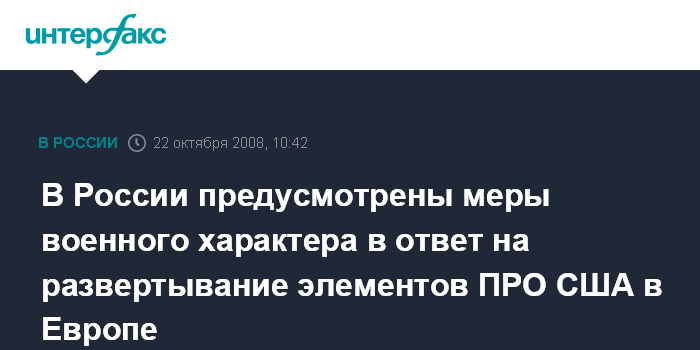 В России предусмотрены меры военного характера в ответ на развертывание элементов ПРО США в Европе