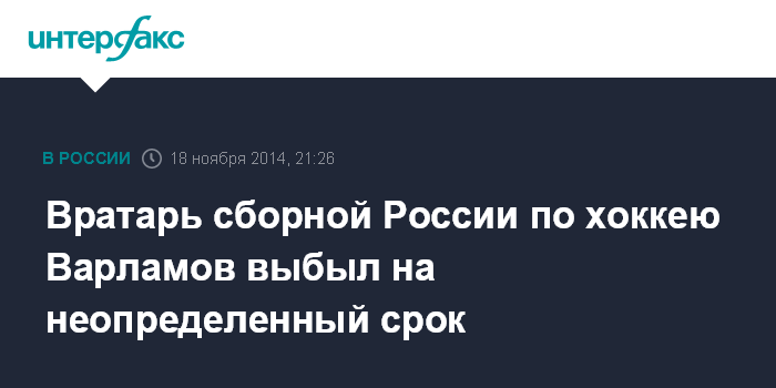 Москва. 18 ноября. INTERFAX.RU - Вратарь "Колорадо" Семен Варламов выбыл на неопределенный срок из-за травмы паха, сообщил официальный сайт Национальной хоккейной лиги (НХЛ).