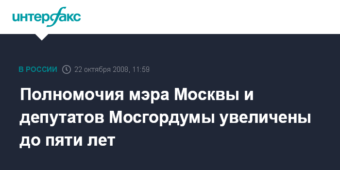 Полномочия мэра Москвы и депутатов Мосгордумы увеличены до пяти лет