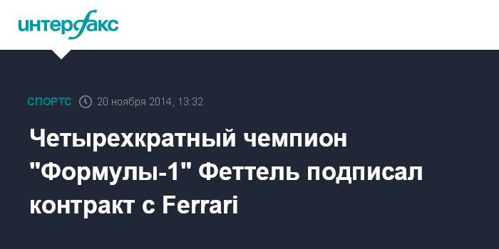 Москва. 20 ноября. INTERFAX.RU - Четырехкратный чемпион мира по автоспорту класса "Формула-1" немецкий гонщик Себастьян Феттель подписал контракт с итальянской командой Ferrari.