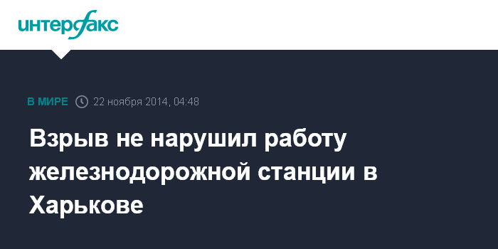 Москва. 22 ноября. INTERFAX.RU - Харьковская железнодорожная станция, где в ночь на субботу произошел взрыв, работает в штатном режиме, сообщил глава Харьковской облгосадминистрации Игорь Балута в своем фейсбуке.