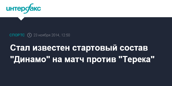Москва. 23 ноября. INTERFAX.RU - Московское "Динамо" объявило состав на матч 14-го тура Российской футбольной премьер-лиги (РФПЛ) с грозненским "Тереком".