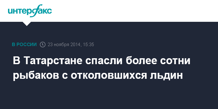 Москва. 23 ноября. INTERFAX.RU - Спасатели в воскресенье сняли 109 любителей зимней рыбалки с двух отколовшихся льдин на реке Кама в Татарстане, сообщили "Интерфаксу".