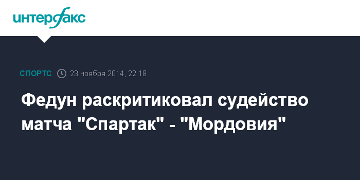 Москва. 23 ноября. INTERFAX.RU - Владелец ФК "Спартак" Леонид Федун подверг критике работу арбитра Владислава Безбородова, который судил игру московского клуба и саранской "Мордовии".