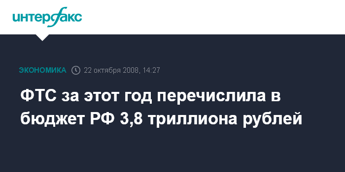 ФТС за этот год перечислила в бюджет РФ 3,8 триллиона рублей