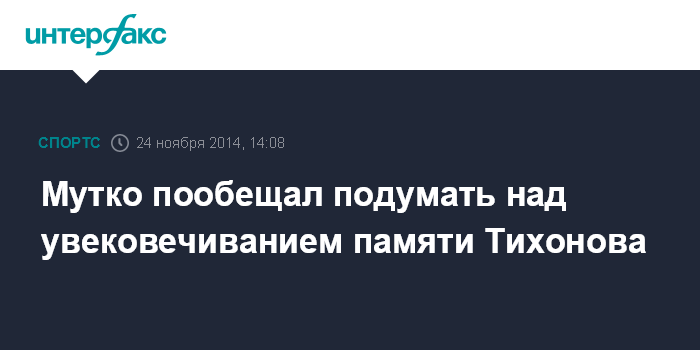 Москва. 24 ноября. INTERFAX.RU - Министерство спорта РФ подумает над тем, как можно увековечить память легендарного хоккейного тренера Виктора Тихонова, сообщил "Интерфаксу" глава ведомства Виталий Мутко.