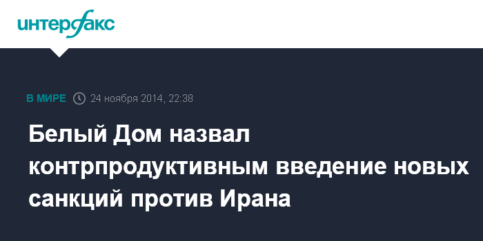 Москва. 24 ноября. INTERFAX.RU - Введение дополнительных ограничительных мер против Ирана во время переговоров между "шестеркой" и Тегераном было бы контрпродуктивным, заявил в понедельник на брифинге официальный представитель Белого дома Джош Эрнест.