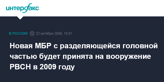 Новая МБР с разделяющейся головной частью будет принята на вооружение РВСН в 2009 году