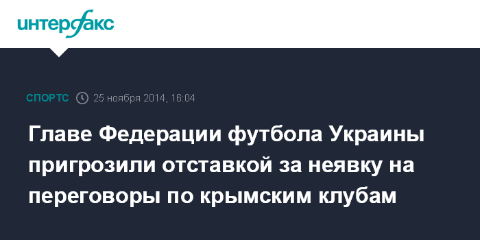 Главе Федерации футбола Украины пригрозили отставкой за неявку на переговоры по крымским клубам