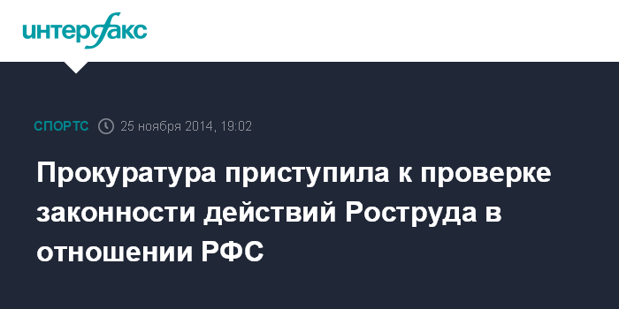 Москва. 25 ноября. INTERFAX.RU - Прокуратура Москвы начала проверку по заявлению Российского футбольного союза (РФС), который попросил проверить законность действий Роструда в отношении союза.