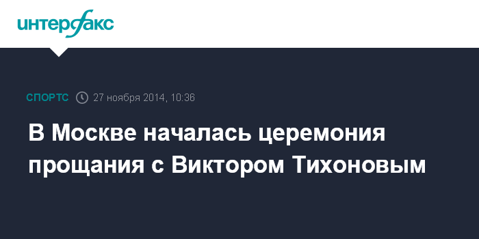Москва. 27 ноября. INTERFAX.RU - Церемония прощания с прославленным хоккейным тренером Виктором Тихоновым началась в Москве в ЛСК ЦСКА в четверг.