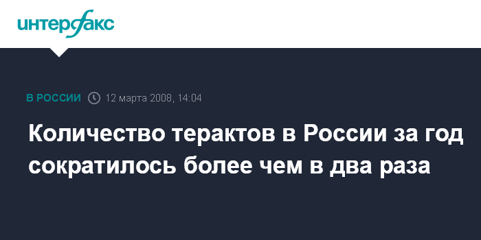 "Количество совершенных в 2007 году террористических актов сократилось по сравнению с 2006 годом более чем в два раза. Предотвращено более 70 террористических актов", - сказал "Интерфаксу" в среду представитель НАК.