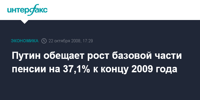 Путин обещает рост базовой части пенсии на 37,1% к концу 2009 года