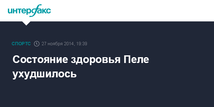 Москва. 27 ноября. INTERFAX.RU - Трехкратный чемпион мира по футболу Пеле, госпитализированный в Сан-Паулу (Бразилия), переведен в палату интенсивной терапии, сообщает в четверг Sky News.