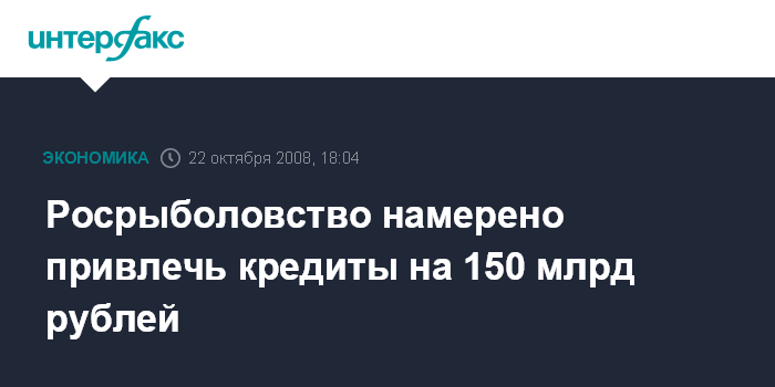 Росрыболовство намерено привлечь кредиты на 150 млрд рублей