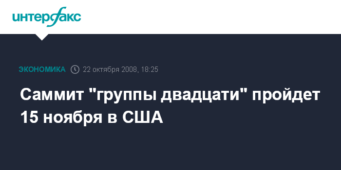 Саммит "группы двадцати" пройдет 15 ноября в США
