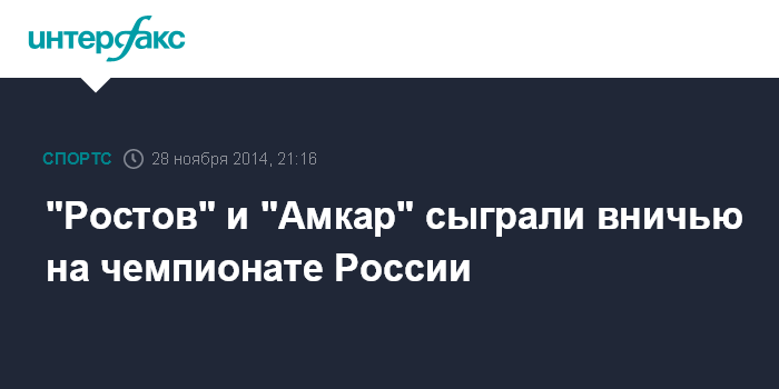 Москва. 28 ноября. INTERFAX.RU - "Ростов" сыграл вничью с пермским" Амкаром" в стартовом матче 15-го тура чемпионата России по футболу среди команд клубов премьер-лиги. Встреча, состоявшаяся в пятницу в Ростове-на-Дону, завершилась со счетом 1:1.