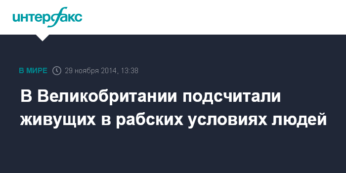 Москва. 29 ноября. INTERFAX.RU - От 10 тыс. до 13. тыс. человек находятся в положении рабов в Великобритании, сообщило в субботу агентство EFE со ссылкой на доклад британского МВД.