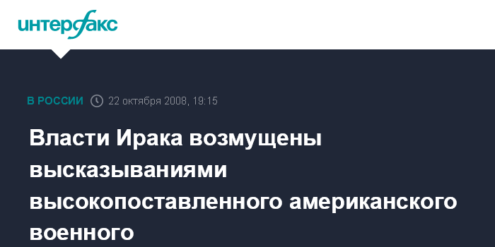 Москва. 22 октября. INTERFAX.RU - Резкие высказывания председателя комитета начальников штабов Вооруженных сил США, адмирала Майкла Маллена, по поводу проекта американско-иракского соглашения о безопасности вызвали негодование Багдада.