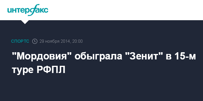 Москва. 29 ноября. INTERFAX.RU - "Зенит" на выезде уступил саранской "Мордовии" в матч 15-го тура Российской футбольной премьер-лиги (РФПЛ).