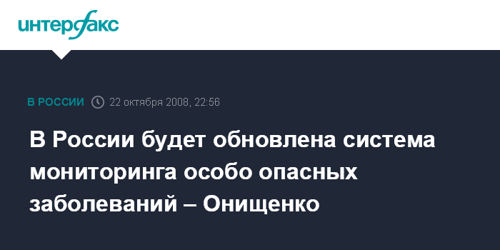 В России будет обновлена система мониторинга особо опасных заболеваний – Онищенко
