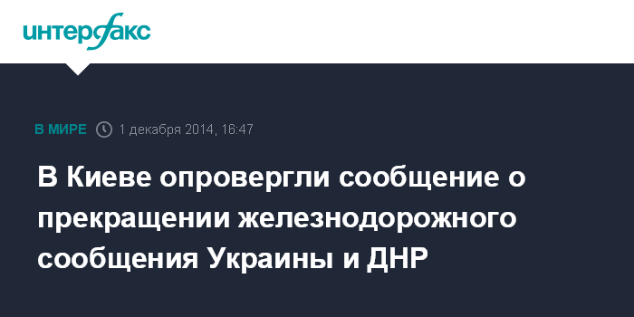 Москва. 1 декабря. INTERFAX.RU - Государственная администрация железнодорожного транспорта Украины ("Укрзализныця") опровергает заявления о том, что с 1 декабря пассажирские перевозки между Украиной и территорией самопровозглашенной Донецкой народной республики полностью остановлены.