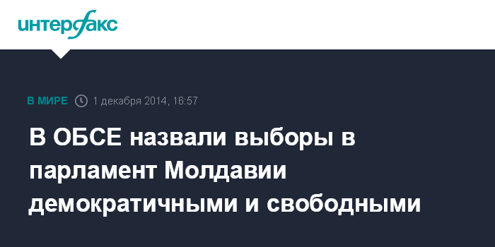 Москва. 1 декабря. INTERFAX.RU - Миссия наблюдателей БДИПЧ ОБСЕ считает, что выборы в парламент Молдавии были демократичными и свободными, заявила на пресс-конференции в понедельник руководитель делегации наблюдателей от Парламентской ассамблеи ОБСЕ на выборах в парламент Молдавии Арта Дейд.
