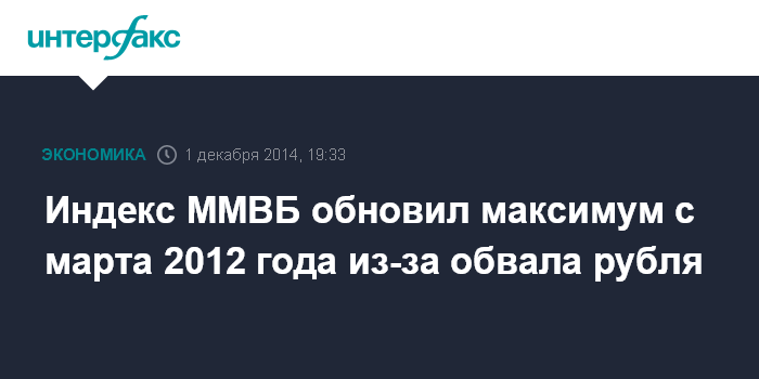 Индекс ММВБ обновил максимум с марта 2012 года из-за обвала рубля