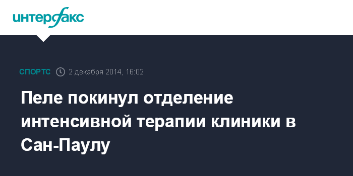 Москва. 2 декабря. INTERFAX.RU - Легендарный бразильский футболист 74-летний Пеле покинул отделение интенсивной терапии клиники в Сан-Паулу, сообщает AP.