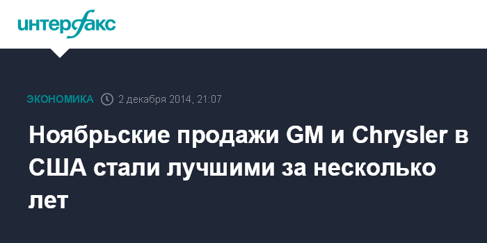 Москва. 2 декабря. INTERFAX.RU - Продажи автомобилей производства General Motors Co. и Chrysler Group LLC в ноябре в США стали рекордными для этого месяца за многие годы, тогда как показатели Ford Motor Co. снизились в годовом выражении, сообщает агентство Bloomberg.