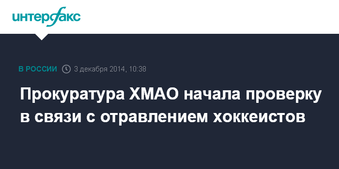 Москва. 3 декабря. INTERFAX.RU - Прокуратура совместно со специалистами Роспотребнадзора и полиции начала проверку по факту массового отравления игроков хоккейных команд в Ханты-Мансийске, сообщает пресс-служба прокуратуры ХМАО в среду.