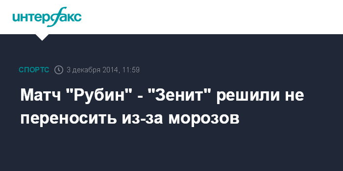 Матч "Рубин" - "Зенит" решили не переносить из-за морозов
