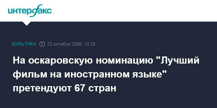 На оскаровскую номинацию "Лучший фильм на иностранном языке" претендуют 67 стран