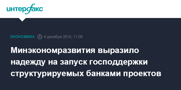 Минэкономразвития выразило надежду на запуск господдержки структурируемых банками проектов