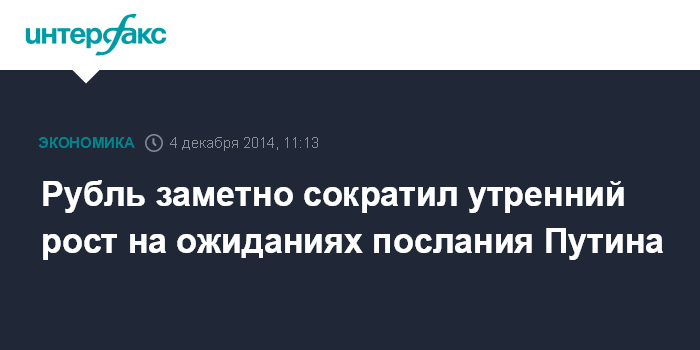 Рубль заметно сократил утренний рост на ожиданиях послания Путина