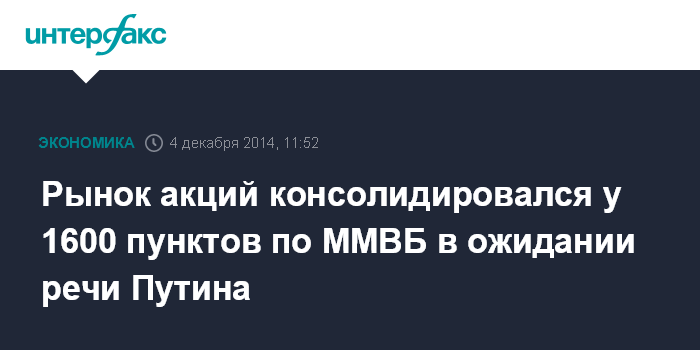 Рынок акций консолидировался у 1600 пунктов по ММВБ в ожидании речи Путина