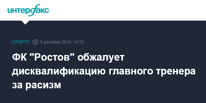 ФК "Ростов" обжалует дисквалификацию главного тренера за расизм