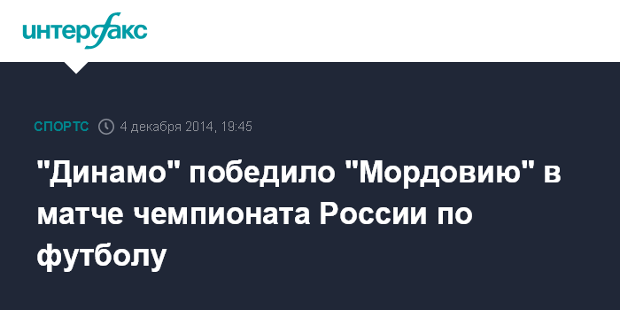 Москва. 4 декабря. INTERFAX.RU - В матче 16-го тура чемпионата России по футболу московское "Динамо" одержало гостевую победу над саранской "Мордовией".