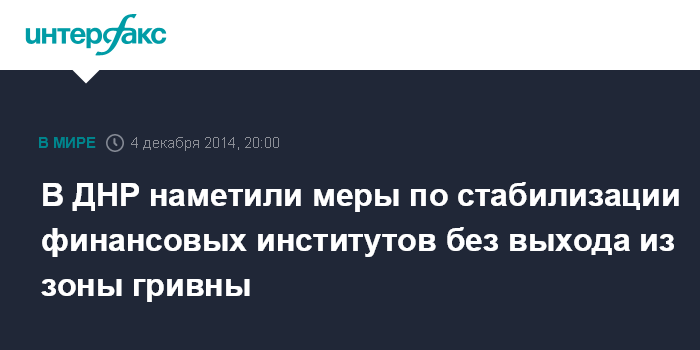 В ДНР наметили меры по стабилизации финансовых институтов без выхода из зоны гривны