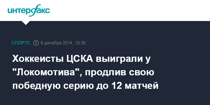 Хоккеисты ЦСКА выиграли у "Локомотива", продлив свою победную серию до 12 матчей