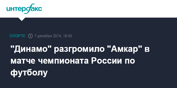 Москва. 7 декабря. INTERFAX.RU - Футболисты московского "Динамо" добились крупной победы над пермским "Амкаром" в матче 17-го тура чемпионата России.