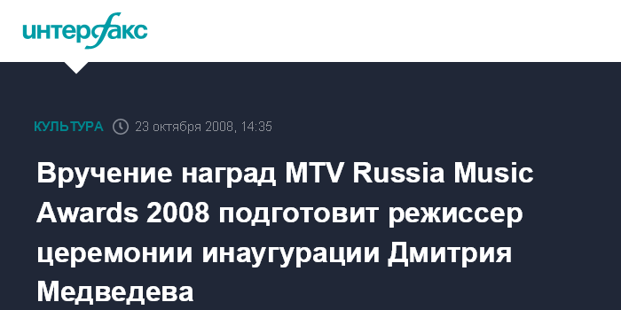 Вручение наград MTV Russia Music Awards 2008 подготовит режиссер церемонии инаугурации Дмитрия Медведева